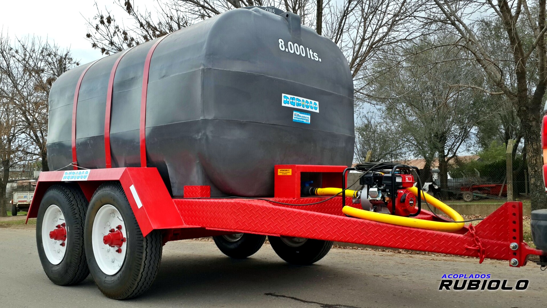 Acoplado balancin cisterna con tanque de plastico para el transporte y almacenamiento de sustancias liquidas (agua, combustibles, leche, etc) para apoyo de fumigadora o para utilizar como sistema de riego.