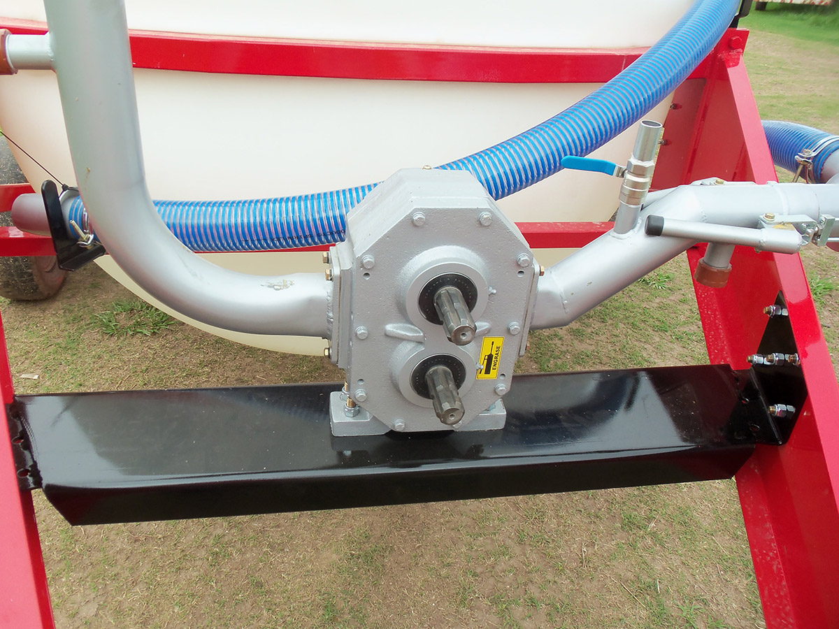 El sistema de esparcido está equipado con una bomba transvasadora de efluentes con doble toma de fuerza: una para la carga del tanque y otra para el esparcido en el campo. Requiere solo 6 HP de potencia, trabaja con un caudal de 800 litros por minuto y se acciona mediante barra cardánica conectada a la toma de fuerza del tractor a 540 RPM, optimizando tiempos de llenado y aplicación.