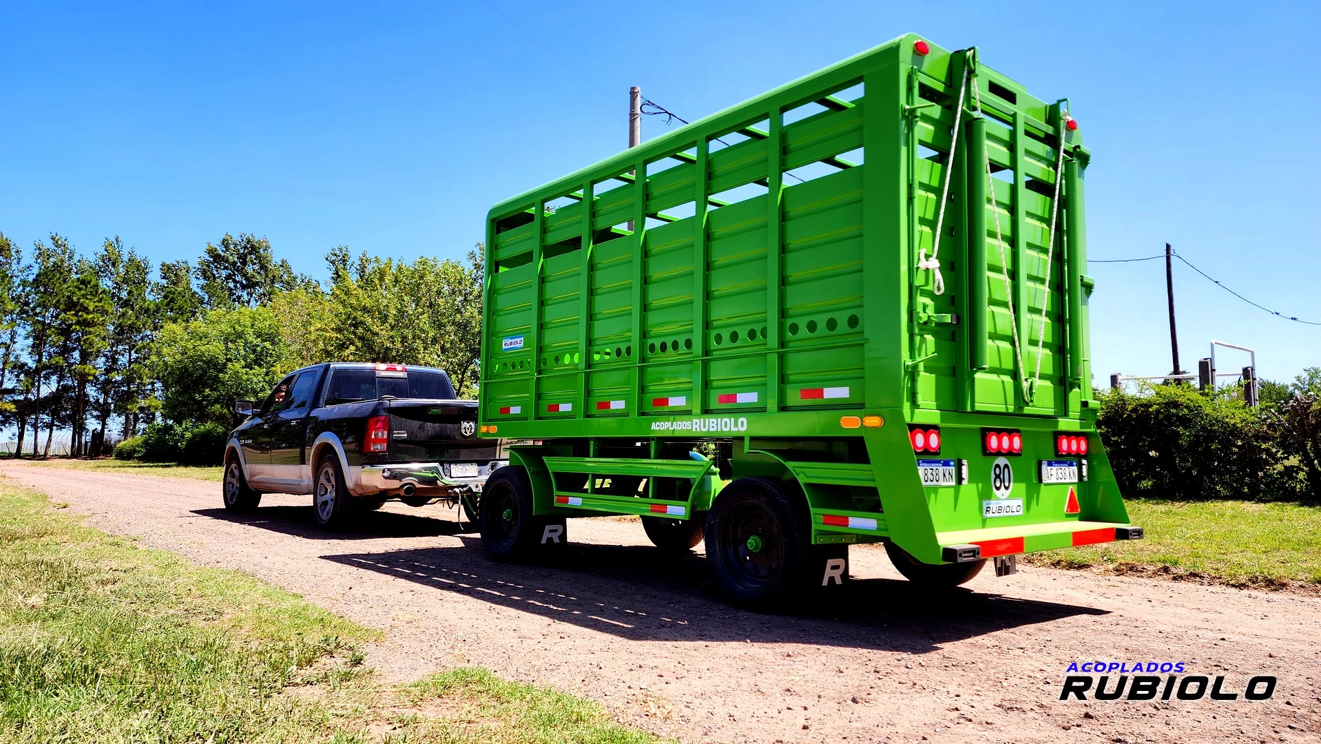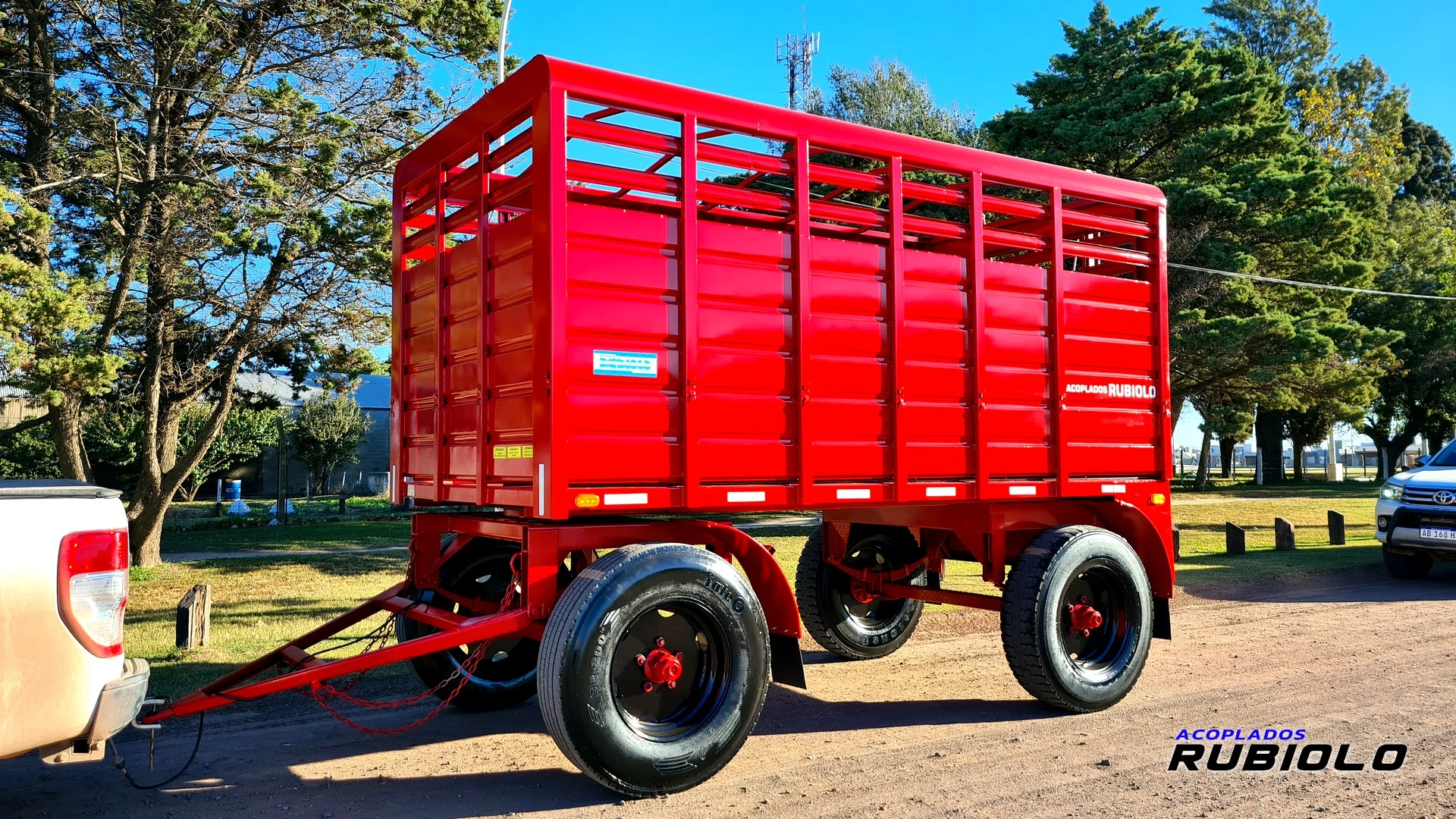 Acoplado trailer tipo jaula para transportar ganado.