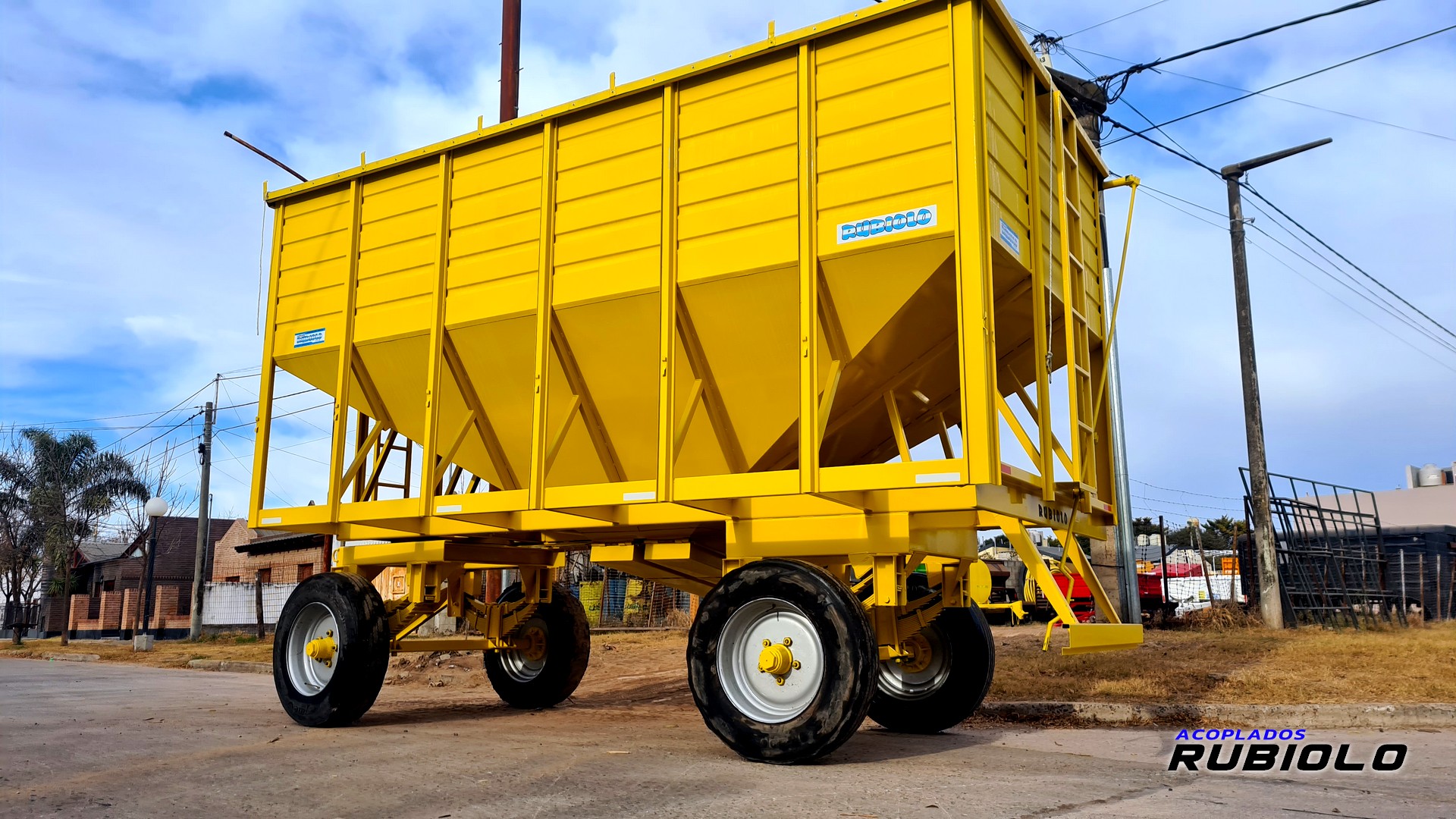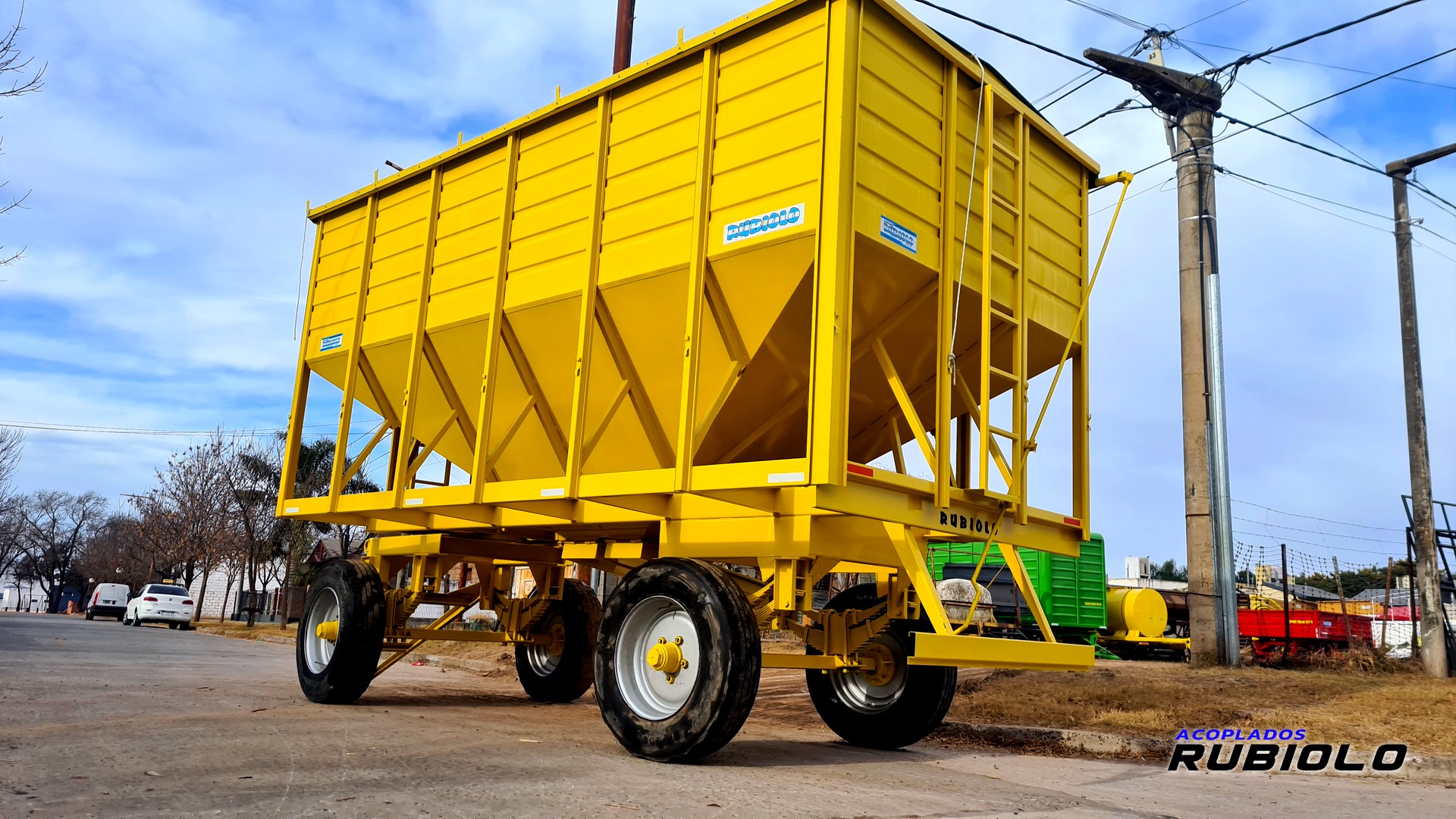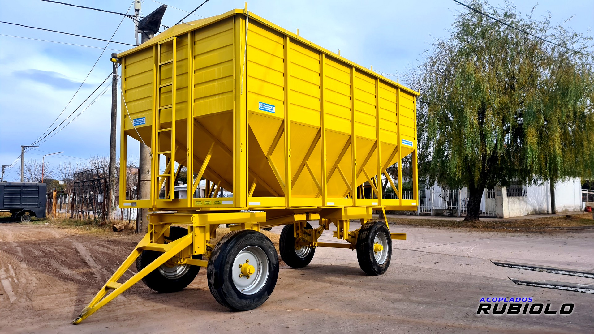 Acoplado tolva de capacidad media, ideal para el transporte dual de semillas y fertilizantes.