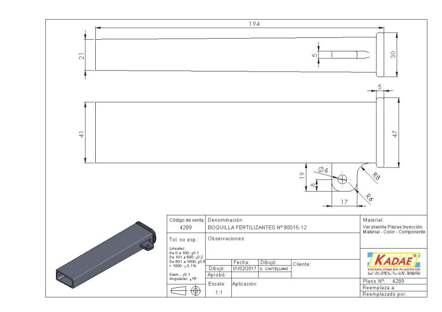 Boquilla para dispensado de semillas en aplicaciones agrícolas. Fabricada con materiales de alta calidad, garantiza una distribución uniforme y controlada. Compatible con diversos sistemas de siembra. Dimensiones específicas permiten su adaptación a diferentes cultivos. Ventajas: rendimiento confiable y reducción del desperdicio de semillas. Disponible para incorporación inmediata en equipamiento agrícola.