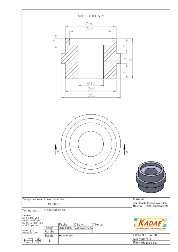 BUJE C/PESTAÑA CENTRAL Ø 35 X Ø 30 X Ø EJE 15 X 25 PL. 36081
