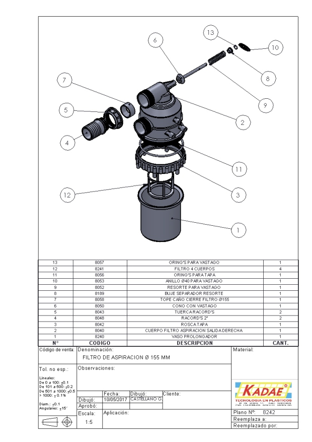 FILTRO ASPIRACION Ø 155 C/4 CUERPO MALLA 100 GRIS