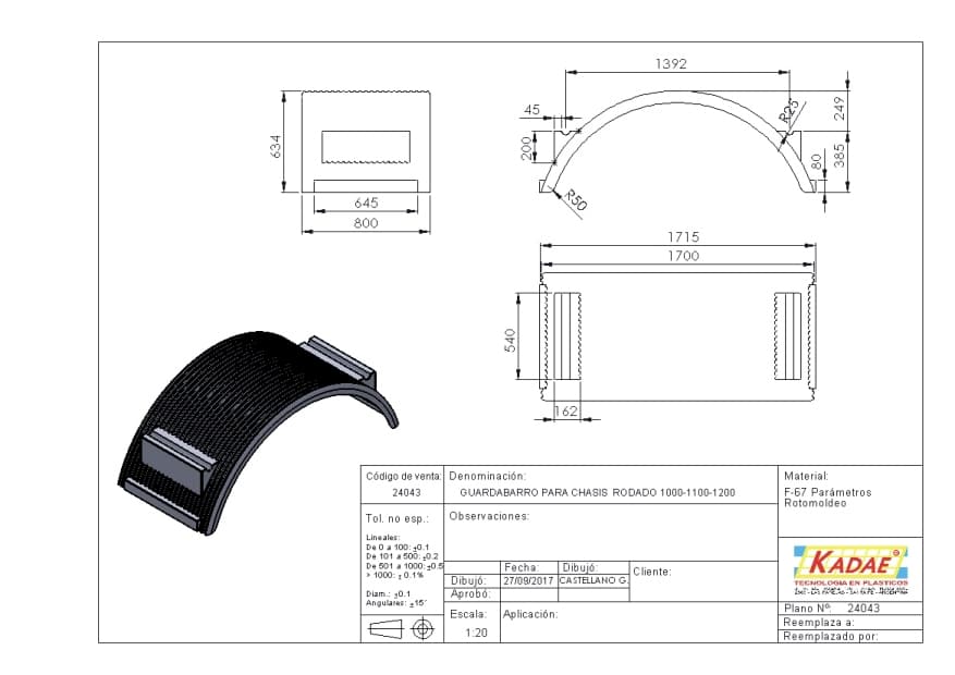 GUARDABARRO PARA CHASIS RODADO 1000/1100/1200