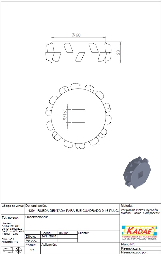 RUEDA DENTADA K-1 CUADRADA 9/16"