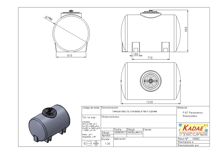 TANQUE 500 LTS. C/BASE M. Ø 760 X 1220 MM.