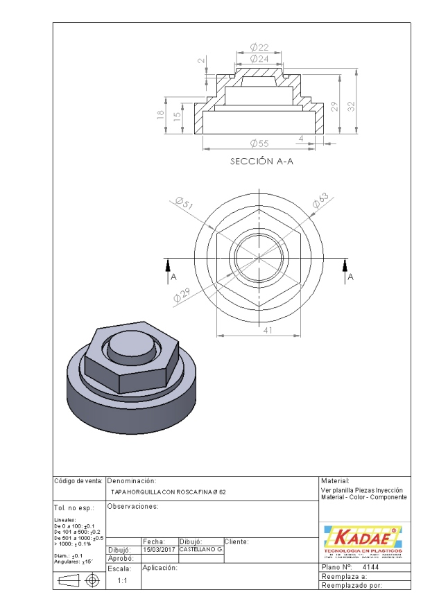 TAPA HORQUILLA C/ROSCA FINA Ø 62 MM. - 50207