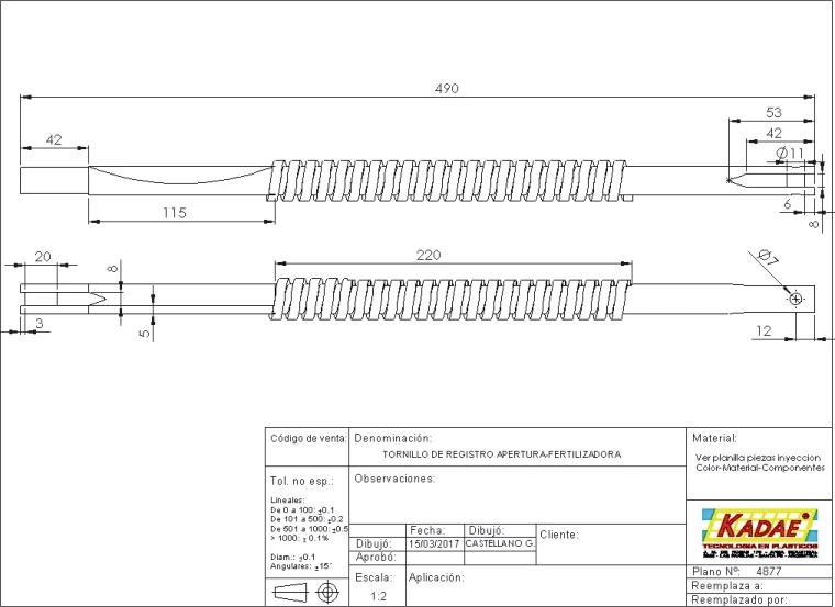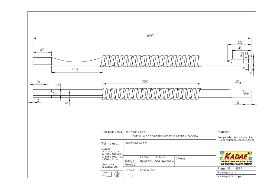 TORNILLO DE REGISTRO APERTURA -FERTILIZADORA -50110